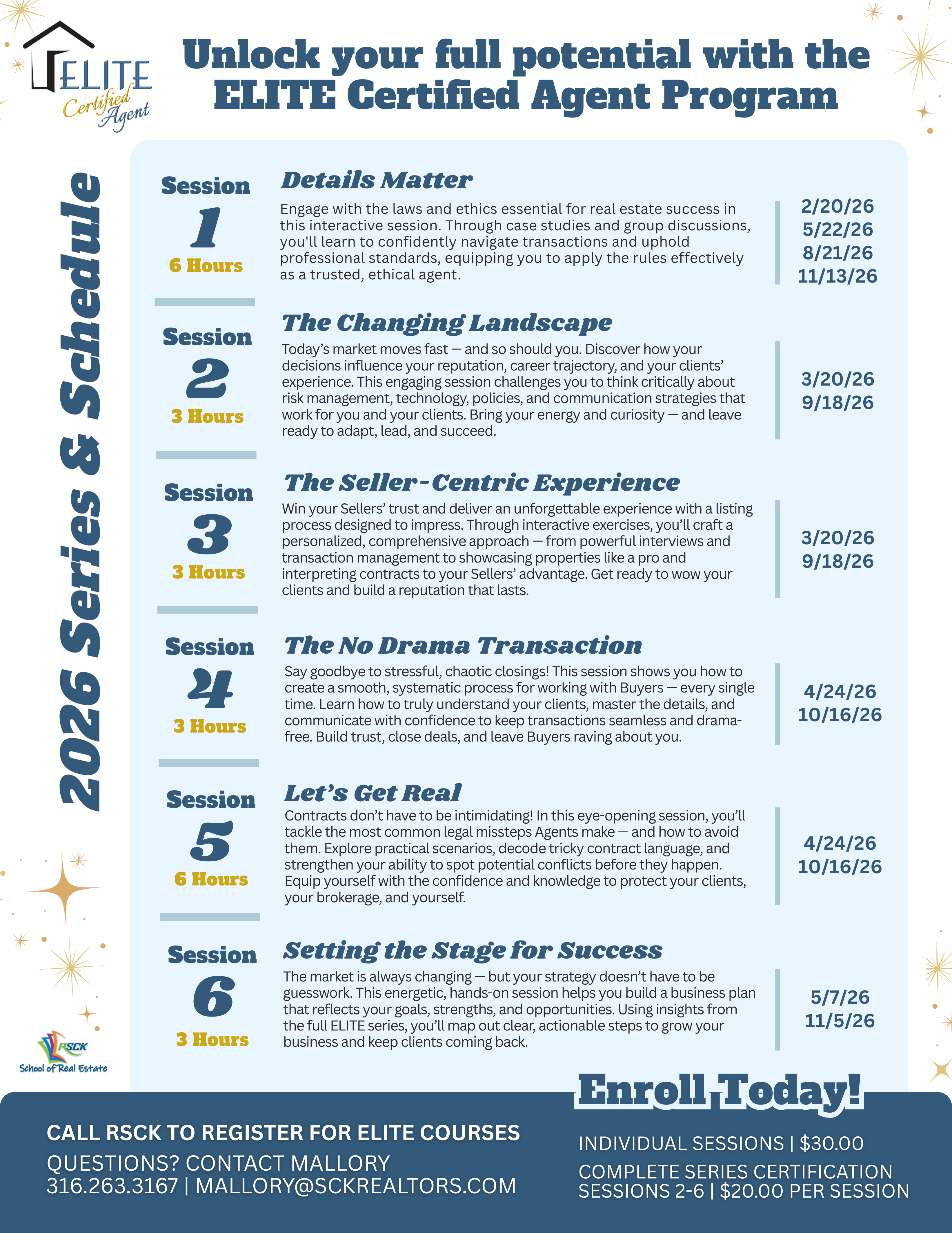 Please contact RSCK to submit a complaint or if you have additional questions via email to education@sckrealtors.com or by calling 316-263-3167.